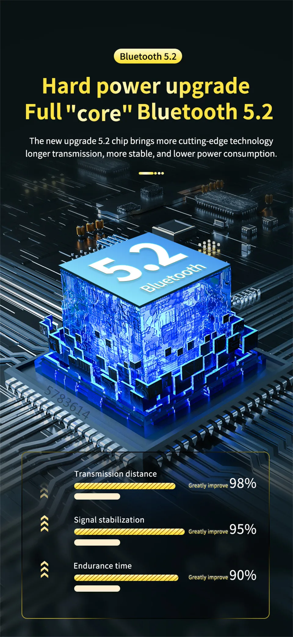 Transmissiont Bluetooth 5.2 de alta velocidade